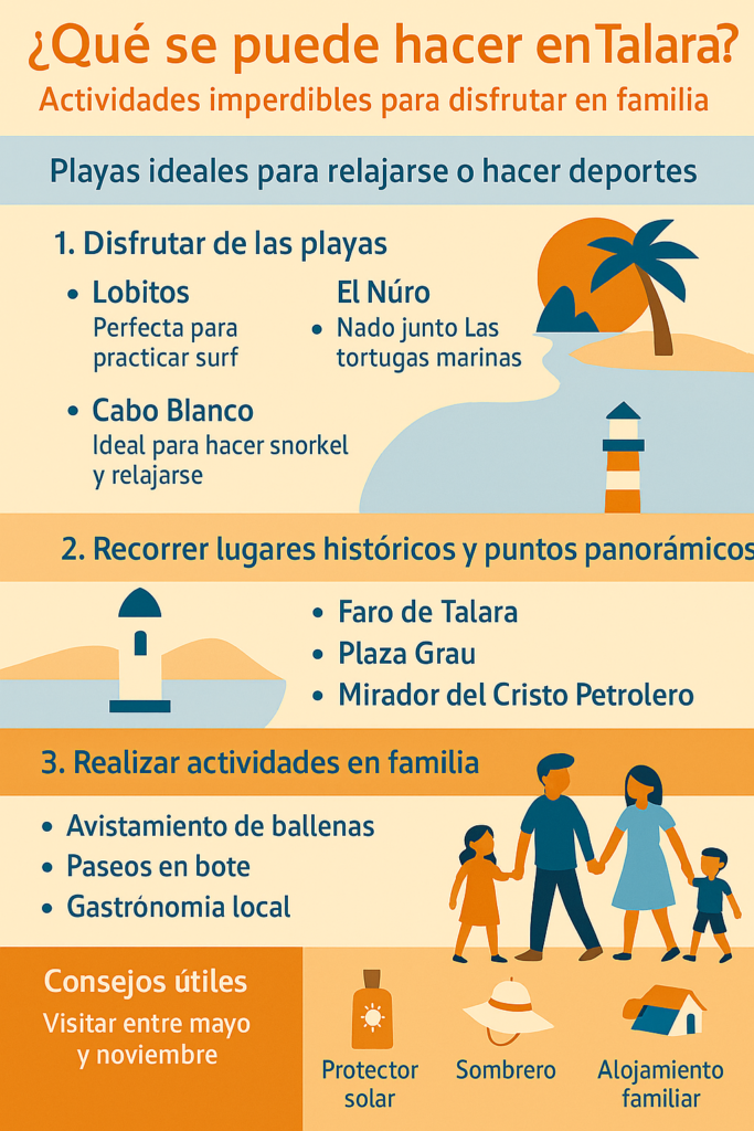 ¿Te estás preguntando qué se puede hacer en Talara? Esta ciudad costera en el norte del Perú es mucho más que petróleo. De hecho, con sus playas cálidas, rincones históricos y opciones para toda la familia, Talara se convierte en el destino ideal para quienes buscan disfrutar de la tradición, la naturaleza y la tranquilidad.